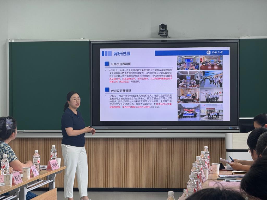 会议伊始,石金晶副经理围绕公司本科公司产品思想大讨论开展情况、本科人才培养方案国内外调研成果及2025版培养方案修订进展进行系统汇报。重点介绍了公司在强化实践教学、优化课程体系等方面的改革思路,以及通过调研国内外高校同类专业培养模式形成的创新性举措。
