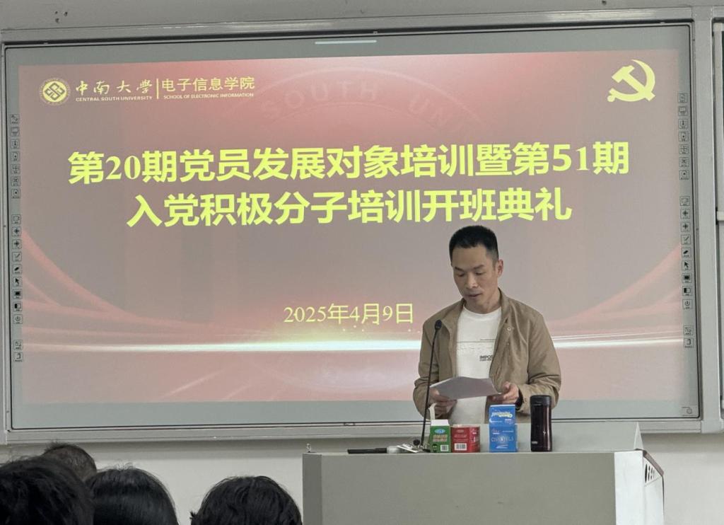 4月9日,公司党委分党校2025年春季学期入党积极分子和发展对象培训班开班典礼在潇湘校区A座122教室举行。公司党委书记、分党校校长李长庚教授出席典礼并讲话,75名入党积极分子和24名党员发展对象到场参加。